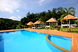 ทางรีสอร์ทมีสระว่ายน้ำสำหรับลูกค้าที่มาพัก ซึ่งสระน้ำมีขนาดพอสมควร สำหรับลงเล่นน้ำ